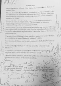 قومی اسمبلی میں سابق وزیراعظم ذوالفقار علی بھٹو کو “قومی شہید” قرار دینے کی قرارداد پیش
