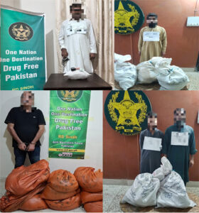 Share FacebookTwitterGoogle+WhatsAppEmailFacebook Messenger اے این ایف کا منشیات اسمگلرو کے خلاف کریک ڈاون ، 5 ملزمان گرفتار ، بھاری مقدار میں منشیات برآمد راولپنڈی شمشاد مانگٹ اے این ایف کا ملک کے مختلف شہروں میں منشیات اسمگلنگ کے خلاف کریک ڈاون ، 5 ملزمان گرفتار کاروائیوں میں 73 لاکھ 34 ہزار روپے سے زائد مالیت کی 483.800 کلو گرام منشیات برآمد۔ راولپنڈی کارگو آفس میں کراچی بھیجے جانے والے پارسل سے 2 کلو چرس اور 7 کلو مشکوک مواد برآمد۔ آر سی ڈی روڈ حب کے قریب گاڑی سے 24 کلو چرس برآمد، 2 ملزمان گرفتار۔ آر سی ڈی روڈ حب کے قریب ایک اور کاروائی کے دوران گاڑی کے خفیہ خانوں سے 64.8 کلو چرس برآمد، ملزم گرفتار۔ آدم جی داود روڈ کراچی میں واقع گودام سے 384 کلو پوٹاشیم پرمینگینیٹ برآمد، ملزم گرفتار۔ نیشنل ہائی وے حیدرآباد پر مسافر بس سے 2 کلو افیون برآمد، ملزم گرفتار۔ گرفتار ملزمان کے خلاف انسداد منشیات ایکٹ کے تحت مقدمات درج کر کے تحقیقات کا آغاز کر دیا گیا ہے۔ 11 arrestedarrestarrestscatch a smugglerclub drugscrackdowndrugdrug bustdrug carteldrug dealersdrug deliverydrug enforcement agencydrug linked casedrug raiddrug ring Share FacebookTwitterGoogle+WhatsAppEmailFacebook Messenger