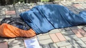 تنخواہ نہ ملنے پر ملازم کا احتجاج ، آفس کے باہر بسترہ لگا کر فٹ پاتھ پر سو گیا