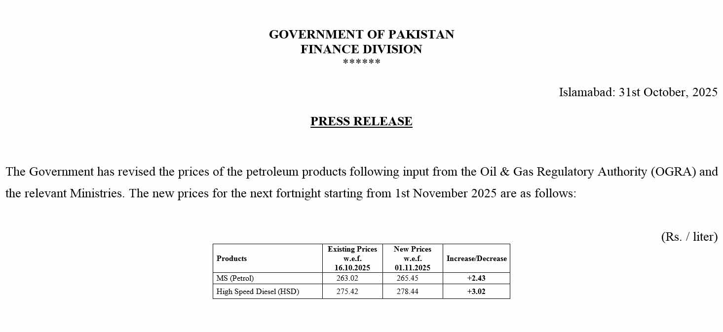 آئندہ 15 روز کیلئے پٹرول، ڈیزل اور مٹی کے تیل کی قیمتوں میں اضافہ