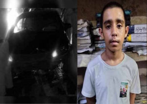 پولیس کے مطابق مین روڈ شاہدرہ ٹاؤن نزد سنگیت سنیما کے قریب حاشر نامی 13 سے 14 سالہ بچہ کار چلا رہا تھا، اس  نے پہلے موٹر سائیکل کو ٹکر ماری جس کے بعد کار بےقابو ہو کر موٹر سائیکل کی دکان پر کھڑی موٹر سائیکلوں سے جا ٹکرائی۔