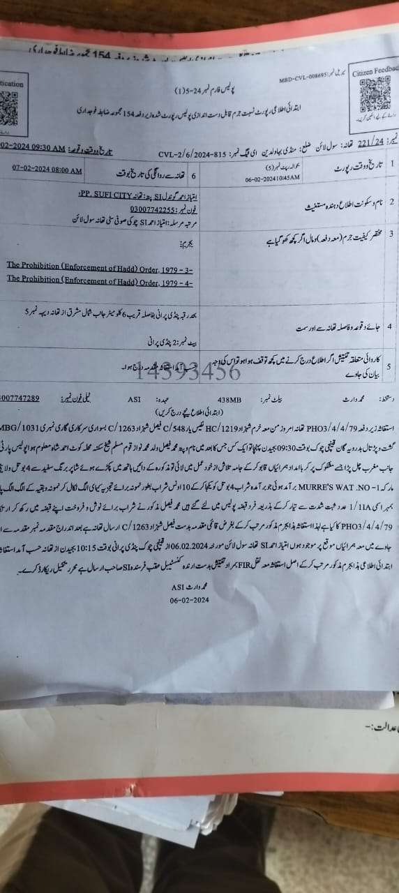 Share FacebookTwitterGoogle+WhatsAppEmailFacebook Messenger منڈی بہاوالدین منڈی بہاوالدین پولیس کی زبردست کاروائی۔ نا معلوم افراد سے شراب کی بوتلیں دریافت۔ 2024-02-07-at-11.57.11-AM2024-02-07-at-11.56.58-AM2024-02-07-at-11.57.02-AM2024-02-07-at-11.57.04-AM Mandi Bahauddin today newsmandi bhavtoday mandi bahauddin newsZoor Awar Share FacebookTwitterGoogle+WhatsAppEmailFacebook Messenger