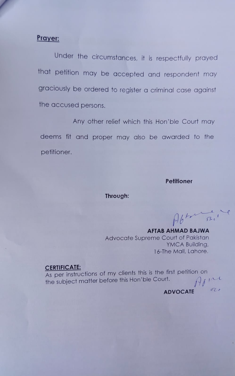 متاثرین کے وکیل نے استدعا کی کہ عدالت نے حکم دیا تھا کہ پلاٹ فروخت کر کے متاثرین کو معاوضہ ادا کیا جائے، نسلہ ٹاور سے ملحقہ 240 گز کا پلاٹ بھی فروخت کر کے متاثرین کو رقم دی جائے۔