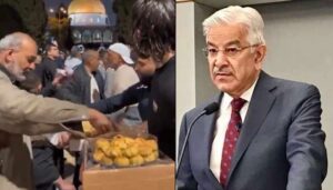 وزیر دفاع خواجہ محمد آصف نےجنگ بندی کے بعد اہل فلسطین کی خوشی میں مٹھائی بانٹنے کی ویڈیو شیئر کردی۔