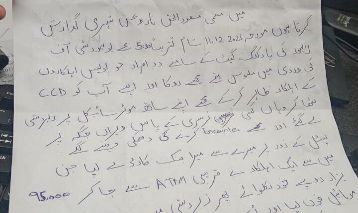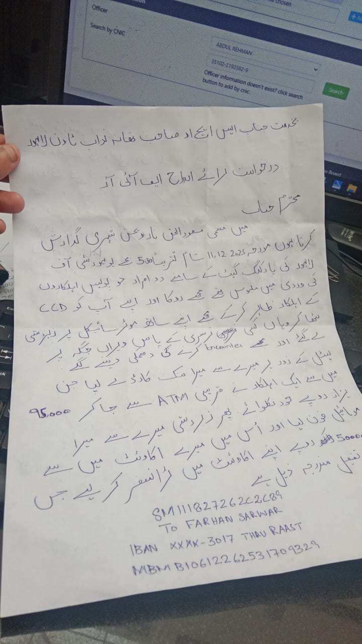 پولیس اہلکاروں نے پسٹل کے زور پر میرے بینک کارڈ لے لئے، ایک اہلکار نے قریبی اے ٹی ایم میں جا کر 95 ہزار روپے نکلوا لئے، شہری مسعود