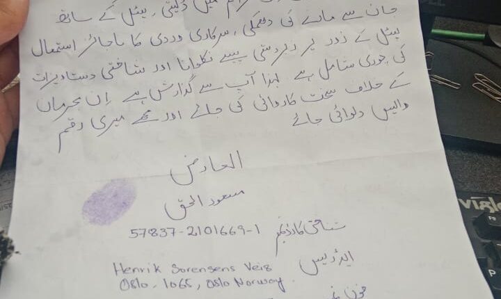 مسعود الحق نادر شہری کو 11 دسمبر کی شام نجی یونیورسٹی کے پارکنگ گیٹ کے سامنے دو باوردی پولیس اہلکاروں نے روکا